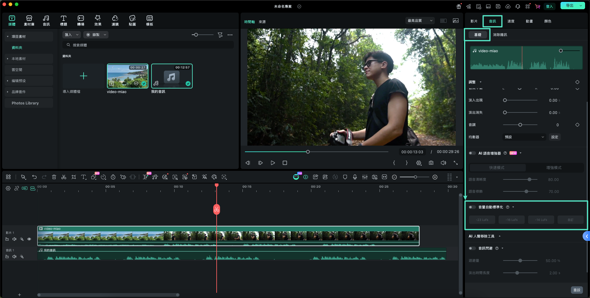 在 Filmora Mac 版啟用音量自動標準化