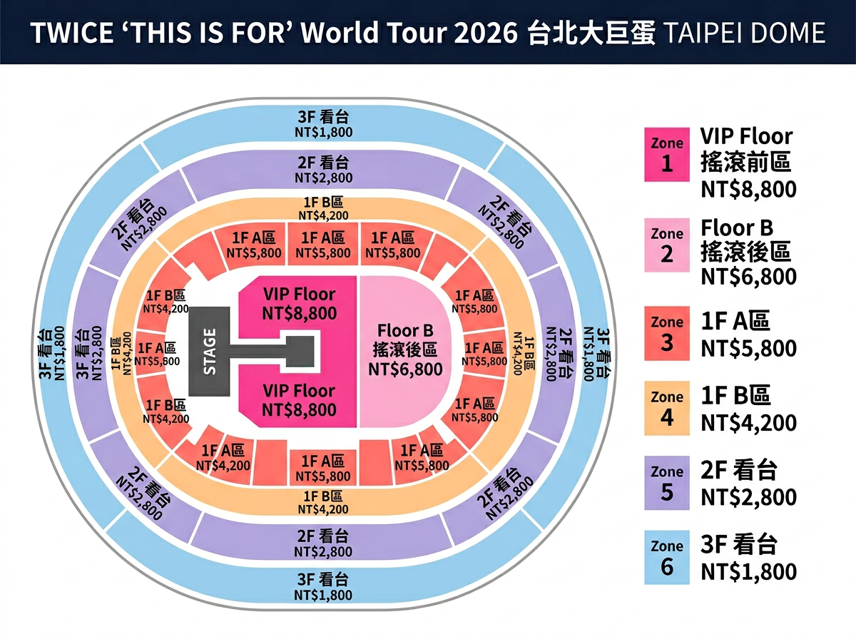 TWICE 大巨蛋座位圖解析